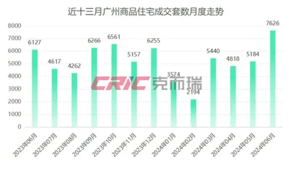 克而瑞统计数据显示,6月广州商品住宅成交7626套,环比增长47%,同比增长24%,不仅实现了今上半年月度成交套数三连涨,更是创下了近一年来月度成交的最好记录。